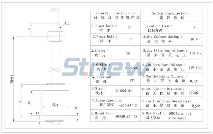 產(chǎn)品使用范圍: 浮球液位開關(guān)是一種結(jié)構(gòu)簡單,使用安裝方便的液位控制器,它沒有復(fù)雜的電路,不會受干擾,在除濕機(jī)、加濕機(jī)、模溫機(jī)、飲水機(jī)、加啡機(jī)、空調(diào).冷風(fēng)扇......等液位控制中都得到廣泛的應(yīng)用.